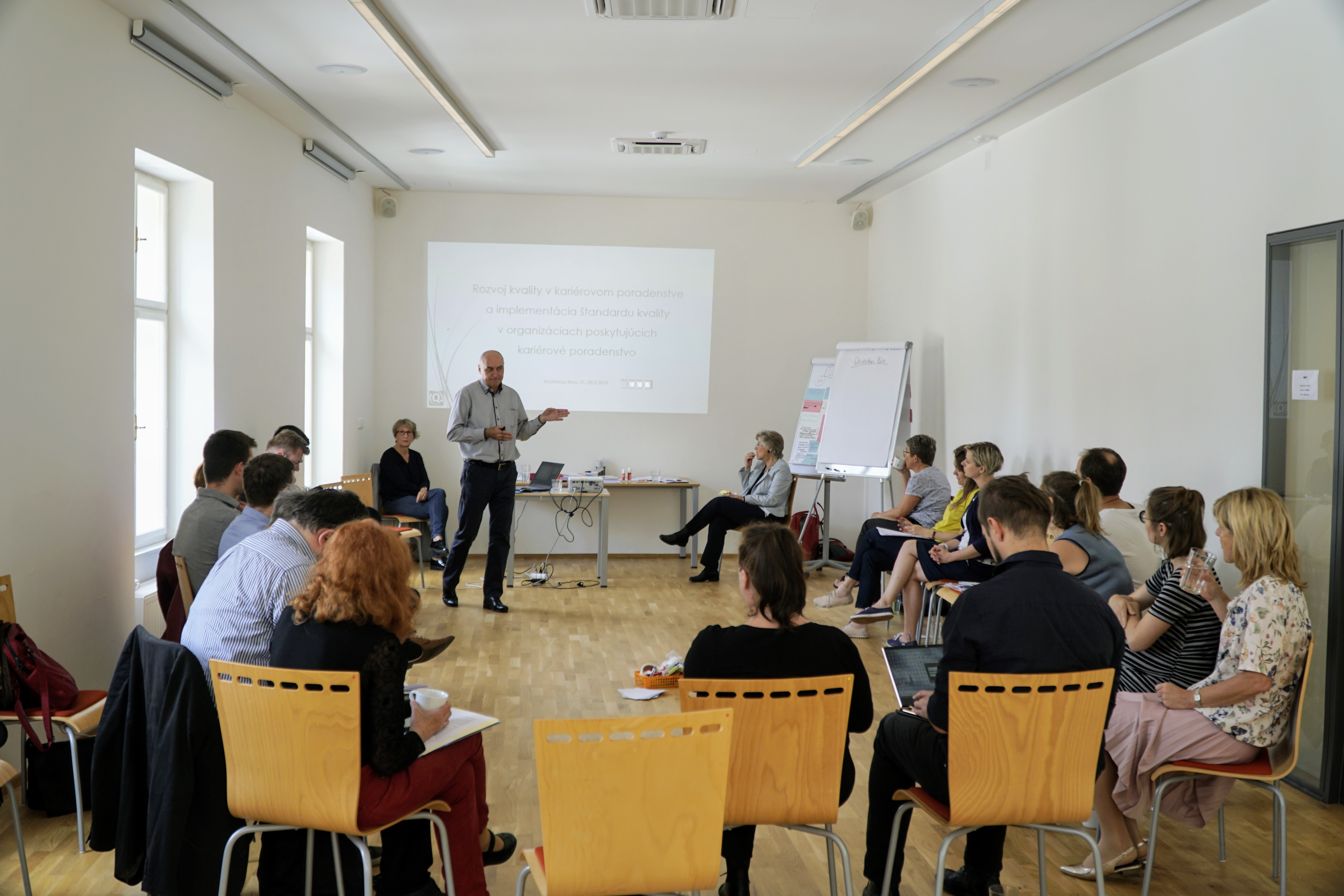 Mr. Tomáš Šprlák, President of the Slovak professional association for career professionals and overall coordinator of the QUAL-IM-G project, introduced this project on improving the implementation of quality assurance in career guidance. The results of the project are the basis of the development of national quality assurance mechanisms in Slovakia, and the Czech Republic.